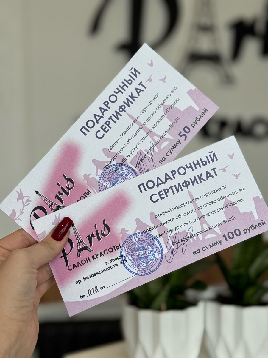 Салон красоты Paris предлагает приобрести подарочные сертификаты:
